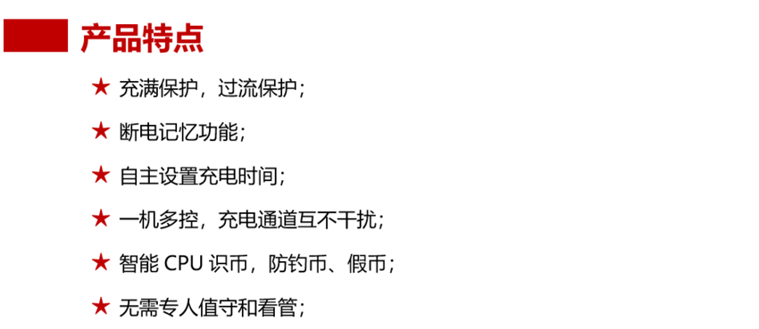 DELIXI德力西CDZC-□T(W)系列4路、6路、10路智能充電站CDZC 系列智能充電站,是德力西電氣有限公司為電動(dòng)自行車、電動(dòng)車及類似車輛安全充電,便于物業(yè)管理而設(shè)計(jì)的充 電管理設(shè)備,該設(shè)備操作簡(jiǎn)單、使用方便,是居住小區(qū)、公共停車場(chǎng)、大型購(gòu)物中心、單位等場(chǎng)所的充電管理首選設(shè)備。該系列 產(chǎn)品可設(shè)置直充、投幣(一元硬幣)和二維碼支付三種消費(fèi)模式。通過(guò)一機(jī)多控、自動(dòng)斷電、斷電記憶、充滿保護(hù)、電子計(jì)數(shù)、 智能 CUP 識(shí)幣、過(guò)載保護(hù)等功能,接入充電設(shè)備,實(shí)現(xiàn)安全充電及充電時(shí)間管理。 .DELIXI德力西CDZC-□T(W)系列4路、6路、10路智能充電站原裝品牌保證。工常伴MRO代理供應(yīng)德力西電氣全系列產(chǎn)品,DELIXI德力西CDZC-□T(W)系列4路、6路、10路智能充電站詢價(jià)報(bào)價(jià),更多產(chǎn)品信息請(qǐng)聯(lián)系在線客服或撥打服務(wù)熱線。