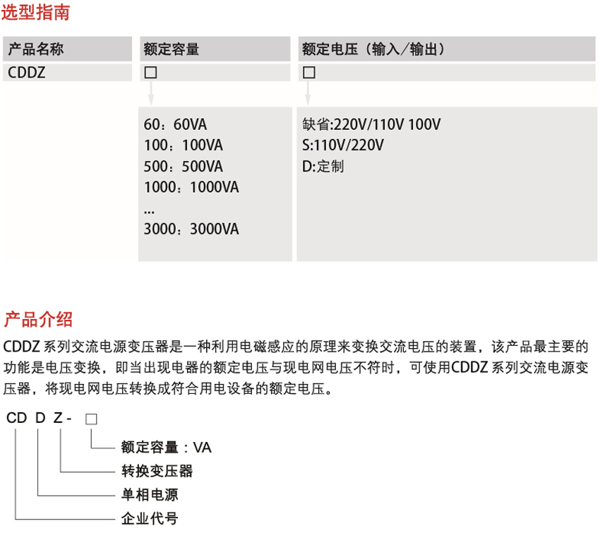 DELIXI德力西CDDZ系列交流電源變壓器參數(shù):
