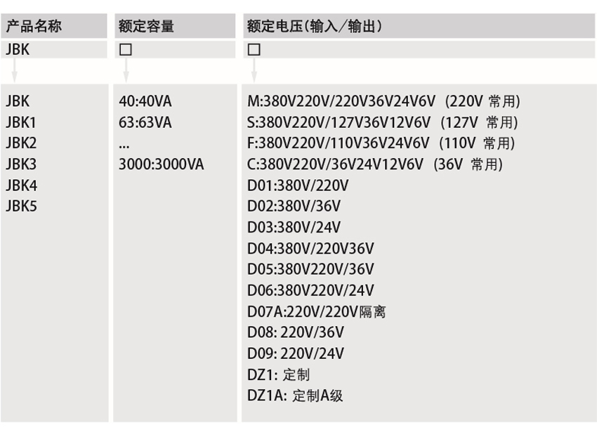 DELIXI德力西JBK系列機床控制變壓器 產(chǎn)品參數(shù):