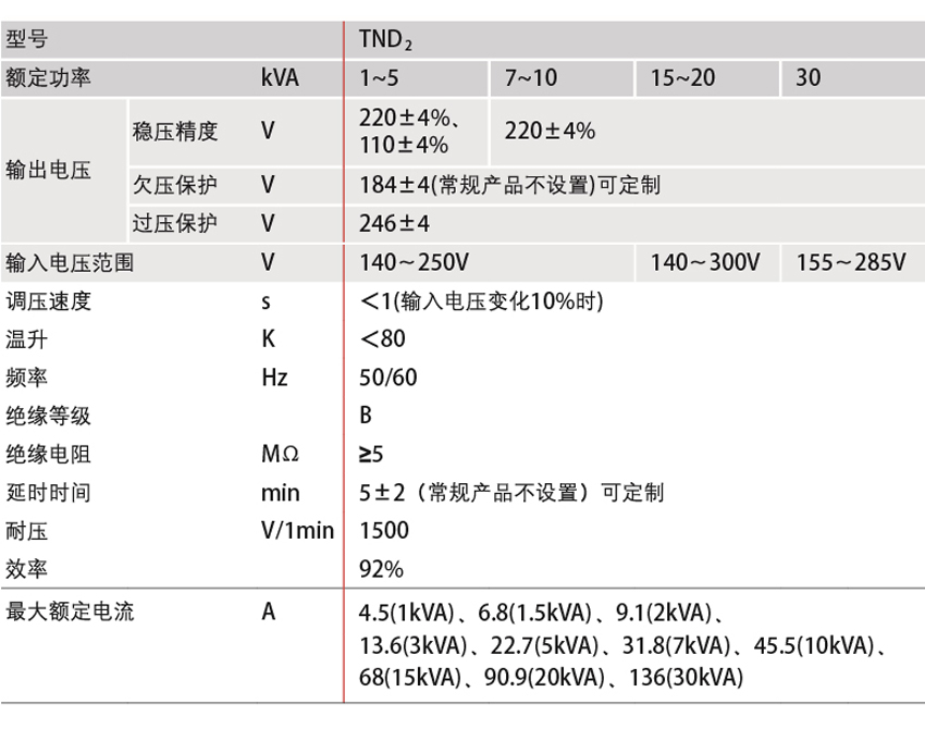 DELIXI德力西TND2 系列高精度全自動交流穩(wěn)壓器 產(chǎn)品參數(shù):