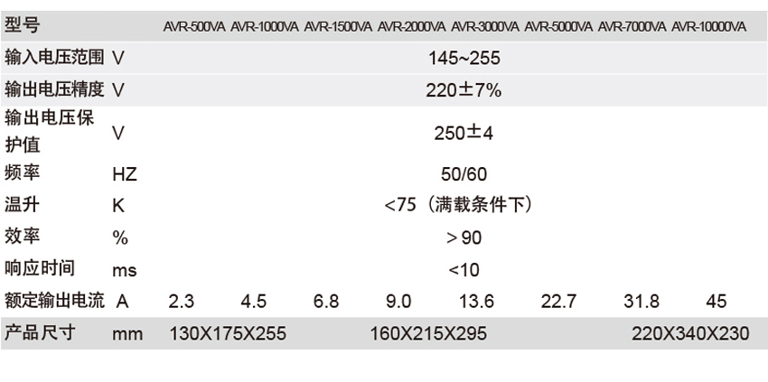 DELIXI德力西AVR 家用自動(dòng)交流穩(wěn)壓器 產(chǎn)品參數(shù):