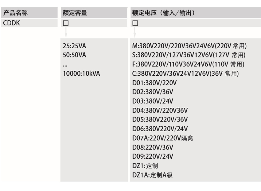 DELIXI德力西CDDK系列控制變壓器參數(shù):