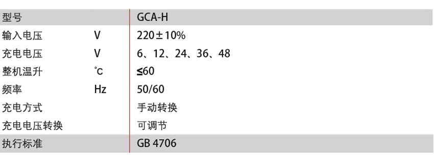 DELIXI德力西GCA-H系列硅整流充電機 產(chǎn)品參數(shù):
