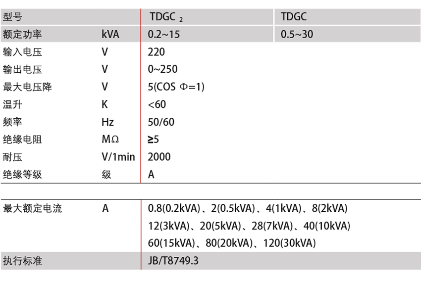 DELIXI德力西TDGC/TDGC2 系列單相接觸調壓器 產品參數(shù):