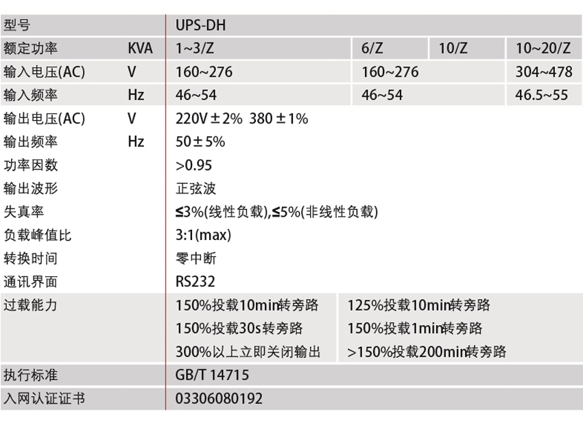 DELIXI德力西UPS-DH 系列高頻在線式不間斷電源 產(chǎn)品參數(shù):