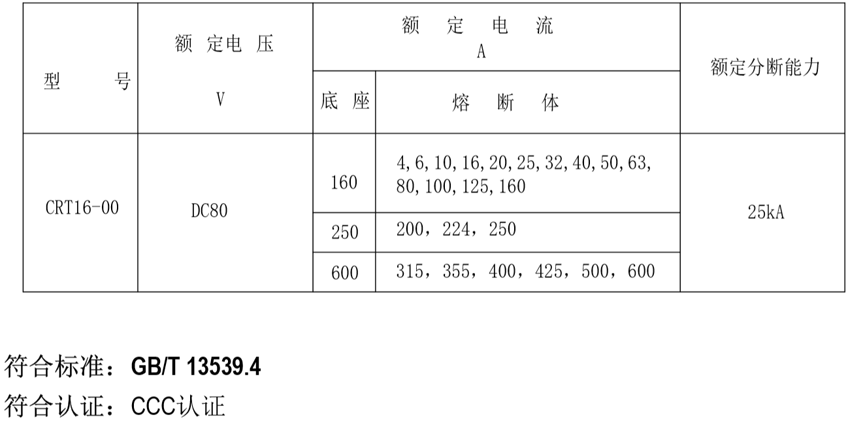 DELIXI德力西CRT16-00直流熔斷器 產(chǎn)品參數(shù):