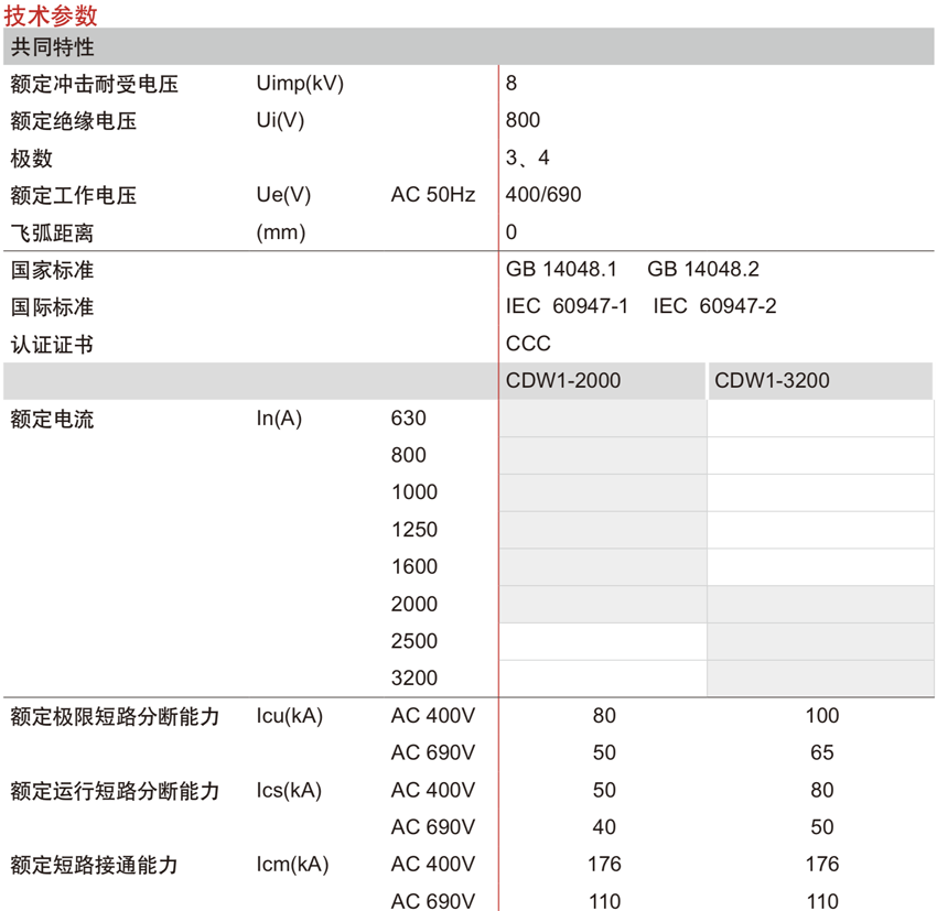 DELIXI德力西CDW1萬能式斷路器 產(chǎn)品參數(shù):