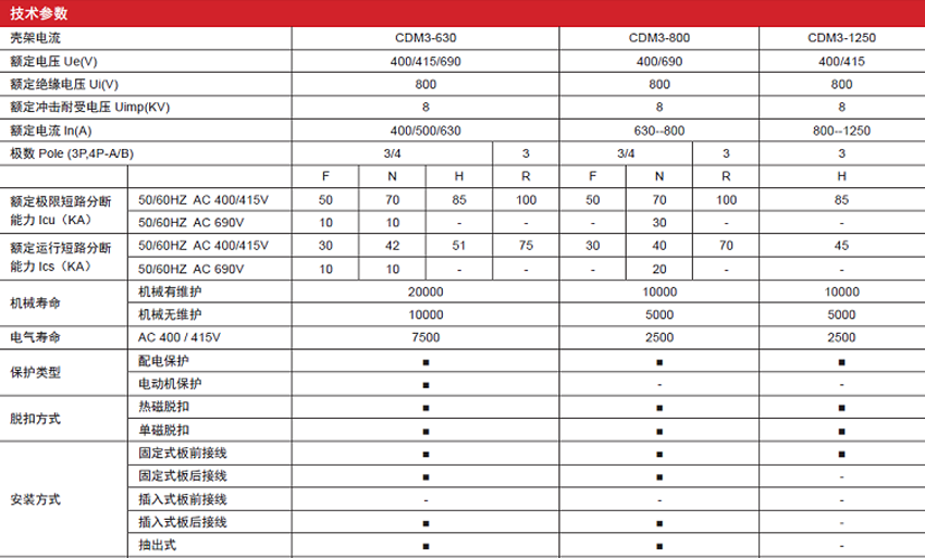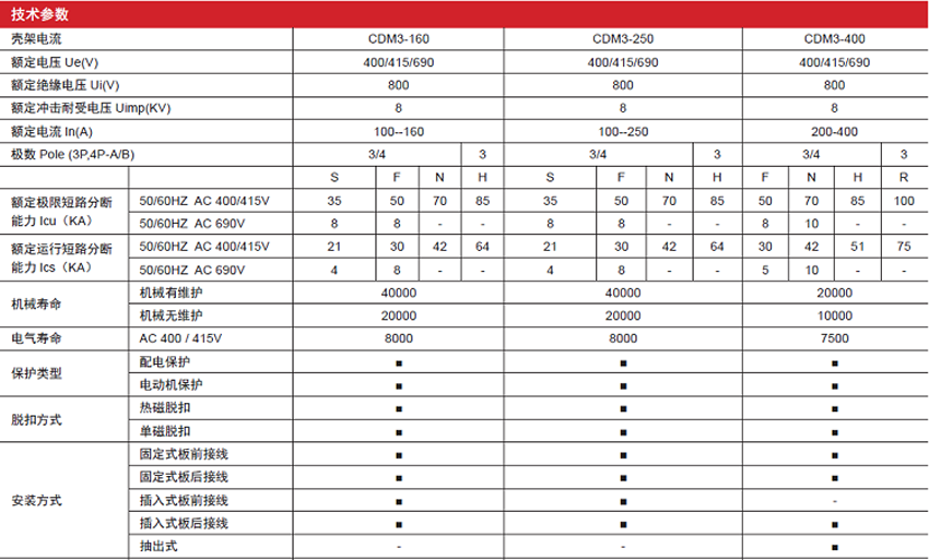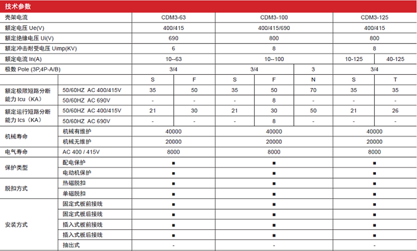 DELIXI德力西CDM3系列熱磁式塑料外殼式斷路器 產(chǎn)品參數(shù):