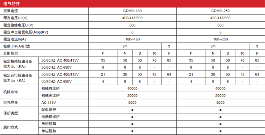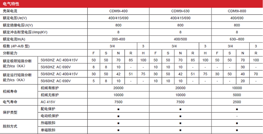DELIXI德力西CDM9i系列熱磁式塑料外殼式斷路器 產(chǎn)品參數(shù):