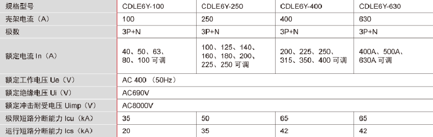 DELIXI德力西CDLE6Y系列電子式液晶型剩余電流動(dòng)作斷路器參數(shù):