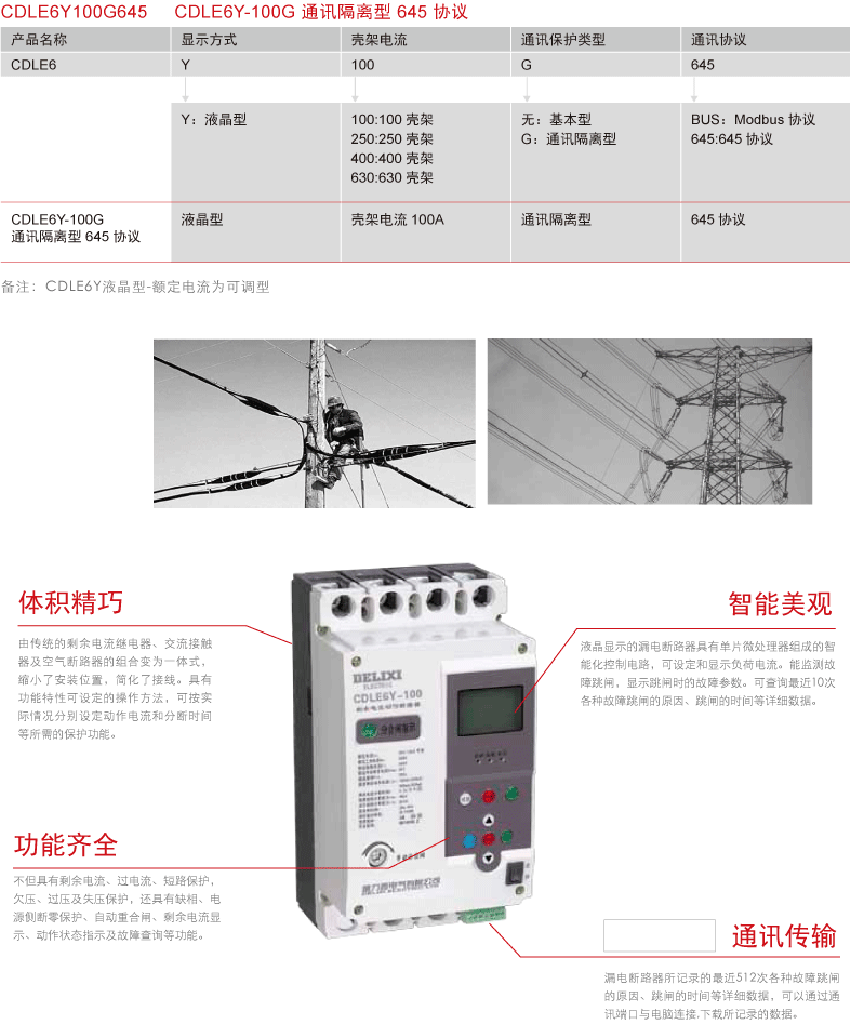 DELIXI德力西CDLE6Y系列電子式液晶型剩余電流動(dòng)作斷路器 產(chǎn)品詳情: