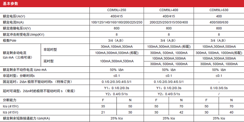 DELIXI德力西CDM9Li系列熱磁式剩余電流動(dòng)作斷路器 產(chǎn)品參數(shù):
