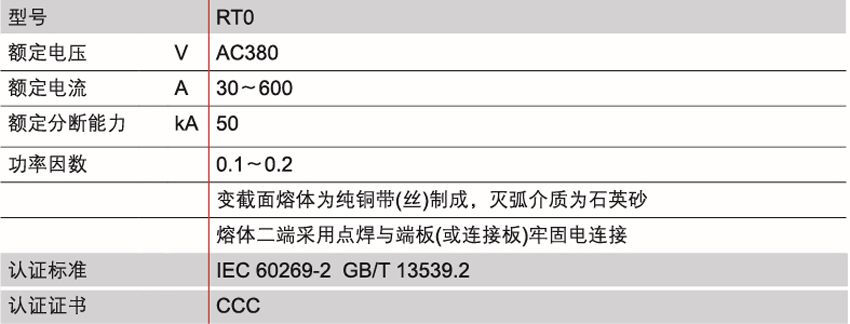 DELIXI德力西RT0系列有填料式熔斷器 產(chǎn)品參數(shù):