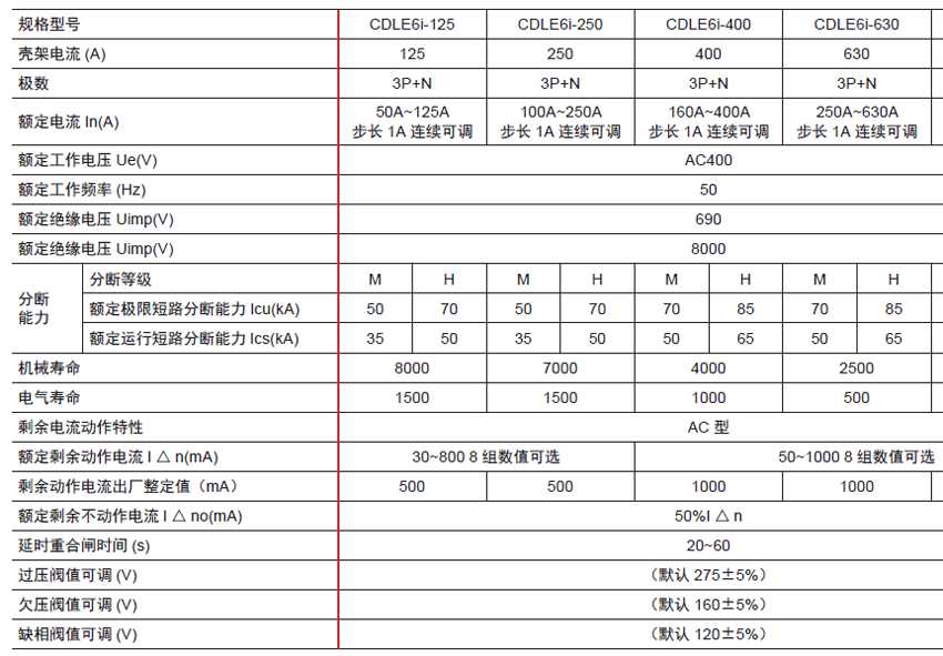 DELIXI德力西CDLE6i剩余電流保護斷路器 產品參數: