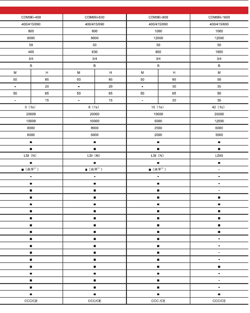 DELIXI德力西CDM9Ei電子式塑殼斷路器參數(shù):