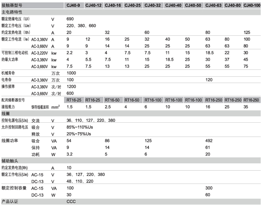 DELIXI德力西CJ40交流接觸器 產品參數(shù):