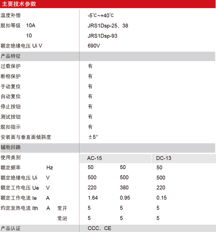 DELIXI德力西JRS1Dsp熱過載繼電器 產(chǎn)品參數(shù):