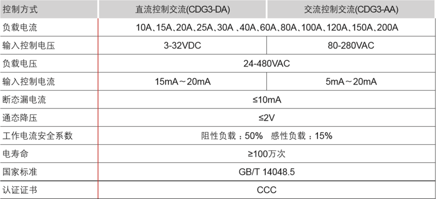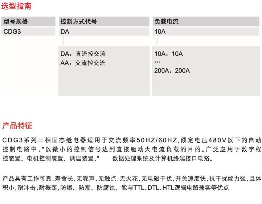 DELIXI德力西CDG3三相固態(tài)繼電器 產(chǎn)品參數(shù):