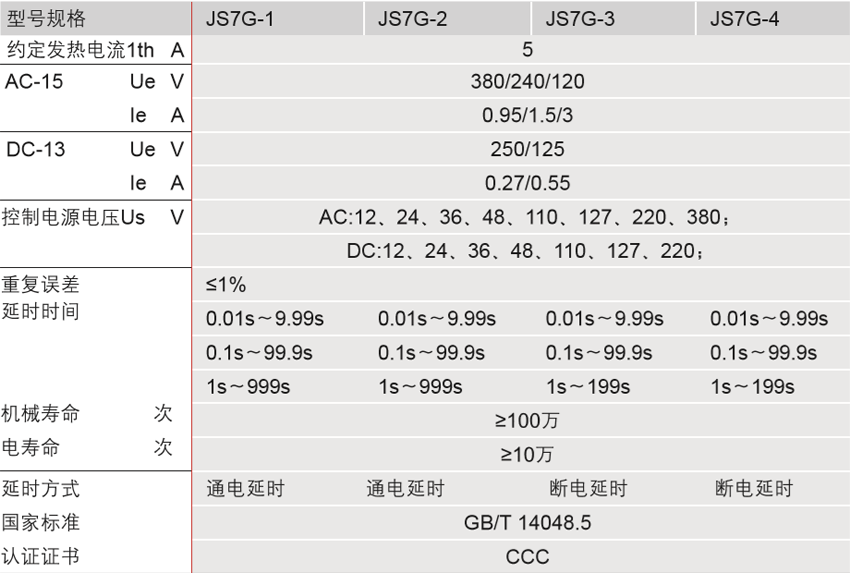 DELIXI德力西JS7G時(shí)間繼電器 產(chǎn)品參數(shù):