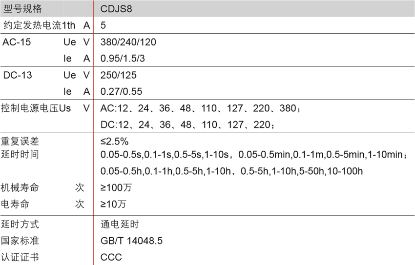 DELIXI德力西CDJS8時(shí)間繼電器 產(chǎn)品參數(shù):