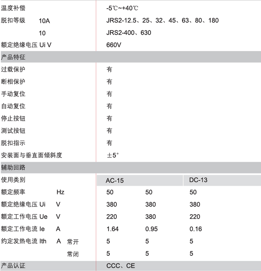 DELIXI德力西JRS2熱過載繼電器 產(chǎn)品參數(shù):