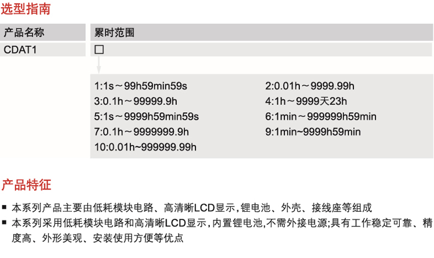 DELIXI德力西CDAT1 系列超小型電子累時(shí)器 產(chǎn)品參數(shù):