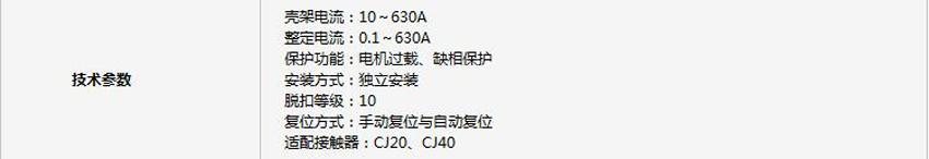 DELIXI德力西JR20熱過載繼電器 產(chǎn)品參數(shù):