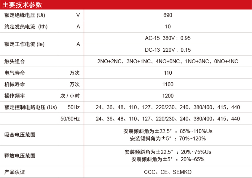DELIXI德力西JZC4s接觸器式繼電器 產(chǎn)品參數(shù):