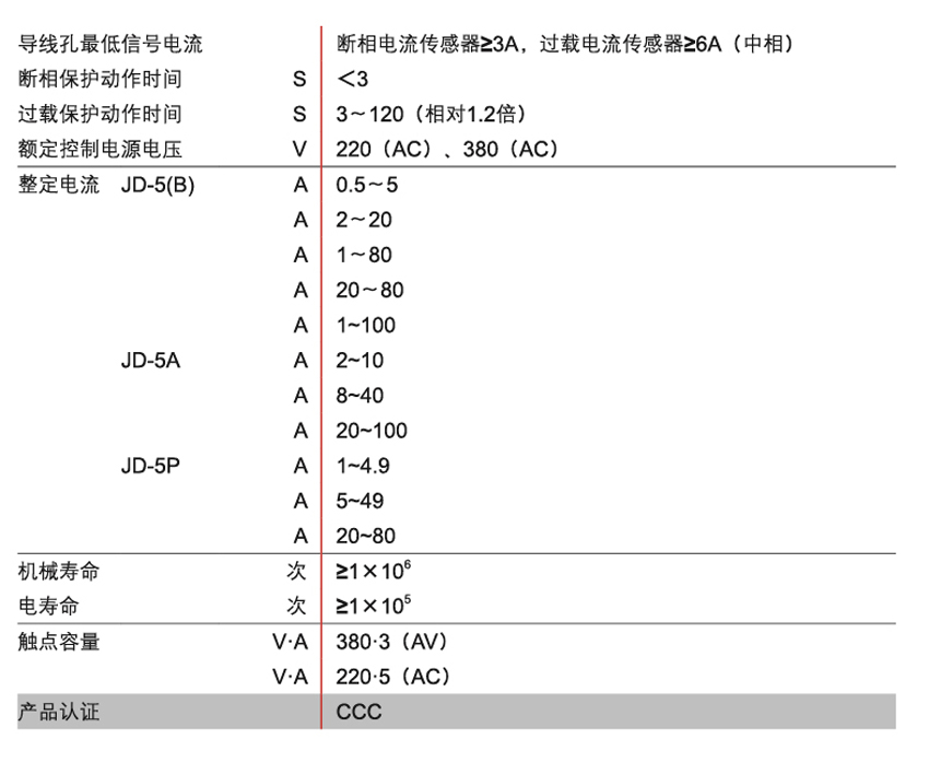 DELIXI德力西JD-5 系列電動(dòng)機(jī)綜合保護(hù)器 產(chǎn)品參數(shù):