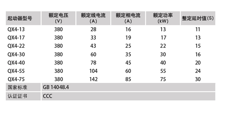 DELIXI德力西QX4 系列自動星-三角起動器 產(chǎn)品參數(shù):