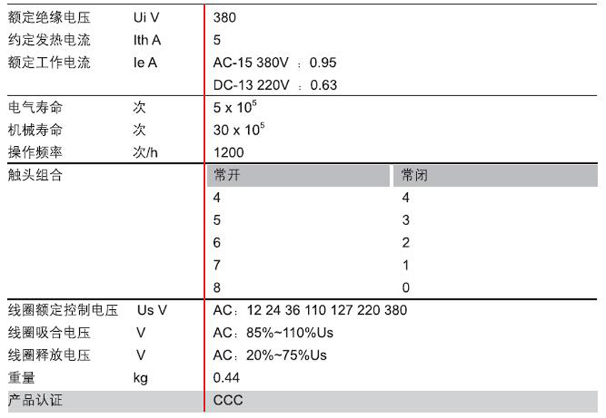 DELIXI德力西JZ7接觸器式繼電器 產(chǎn)品參數(shù):