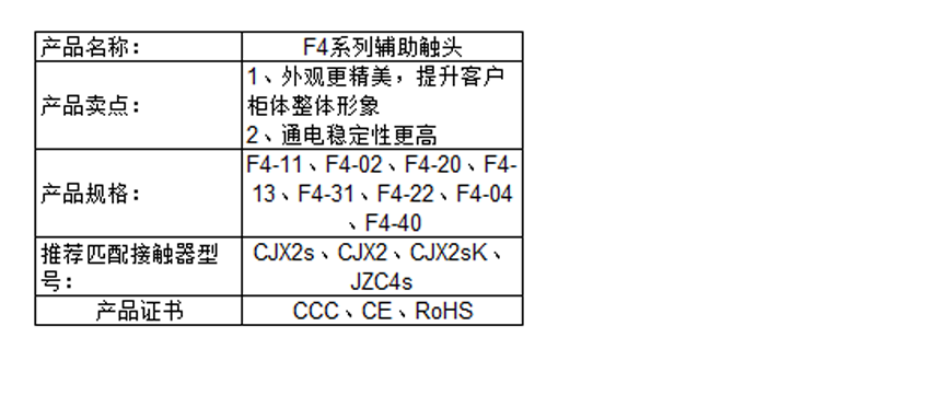 DELIXI德力西F4系列輔助觸頭 產(chǎn)品參數(shù):