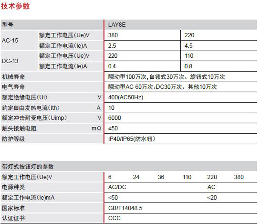 DELIXI德力西LAY8E快速安裝按鈕 產(chǎn)品參數(shù):