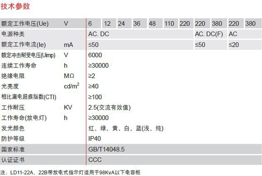 DELIXI德力西LD11指示燈 產(chǎn)品參數(shù):