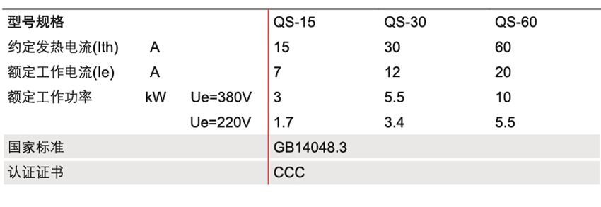 DELIXI德力西QS 系列倒順開關參數(shù):
