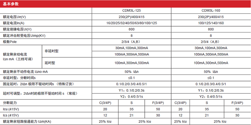 DELIXI德力西CDM3L系列熱磁式剩余電流動(dòng)作斷路器 產(chǎn)品參數(shù):