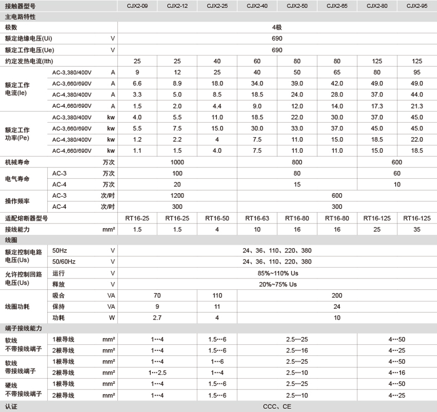 DELIXI德力西CJX2-4P交流接觸器 產(chǎn)品參數(shù):